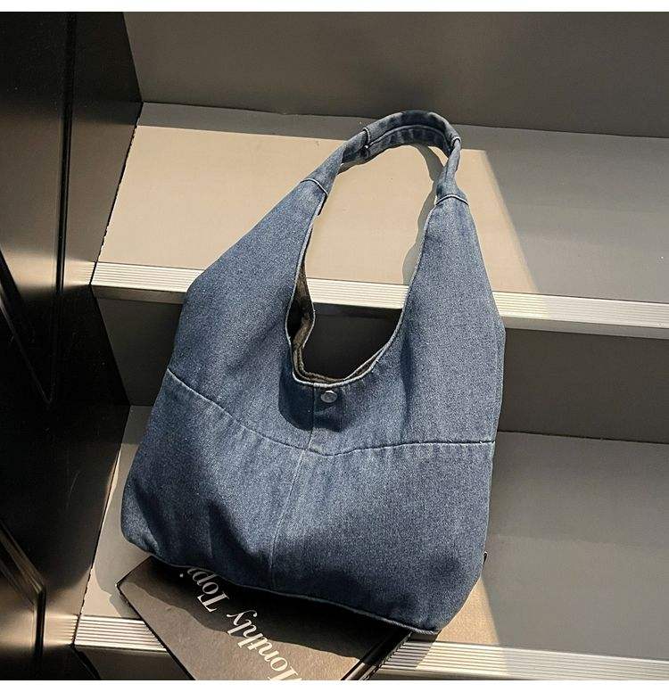 กระเป๋าสะพายไหล่ผ้ายีนส์ขนาดใหญ่สำหรับผู้หญิง สไตล์โบฮีเมียนย้อนยุค ปักโลโก้ตามสั่ง