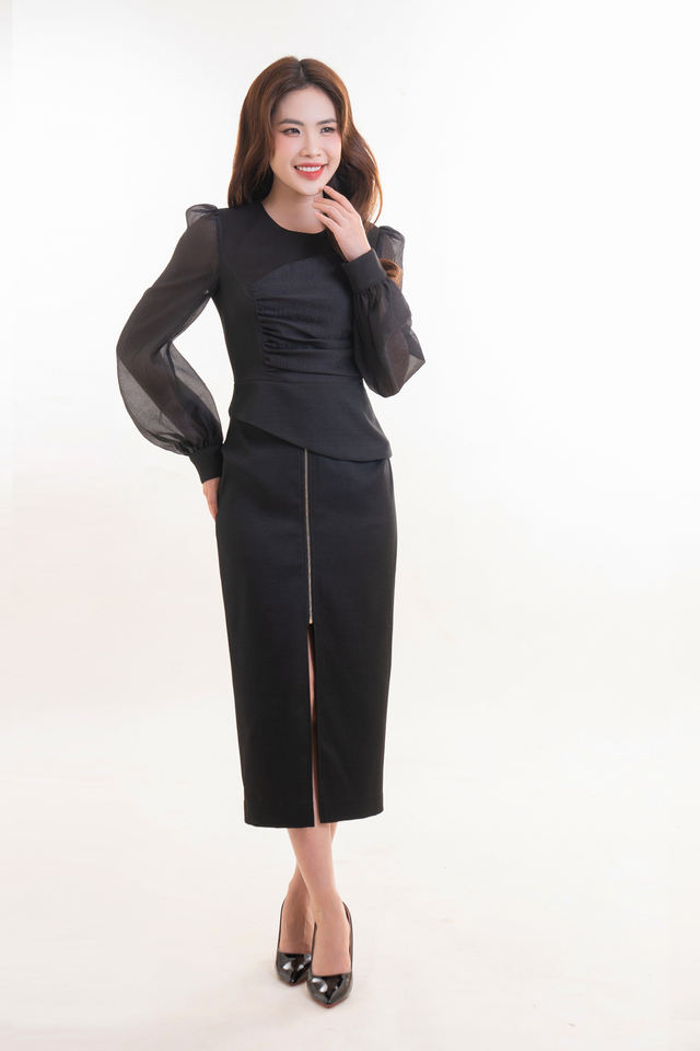 กระโปรงทรงดินสอสำหรับผู้หญิงกระโปรงเอวสูงมีซิปผ่าข้างกระโปรงยาวปานกลางตรงคุณภาพสูง