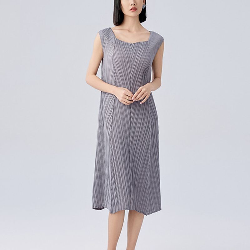 Women's Eco-Friendly Washable Anti-Wrinkle Woven Natural Waist Pleated Knee-Length Summer Casual Dresses Simple Versatile
