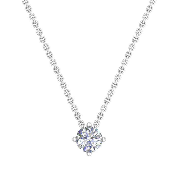 สร้อยคอเงินแท้ 925 ชุบโรเดียม ประดับเพชรเม็ดเดี่ยว 0.30 กะรัต 4.3 มม. เพชรเลี้ยงในห้องปฏิบัติการ ตัวเรือนแบบ 4 กรงเล็บ ความยาว 42+3 ซม. เครื่องประดับหรูหรา