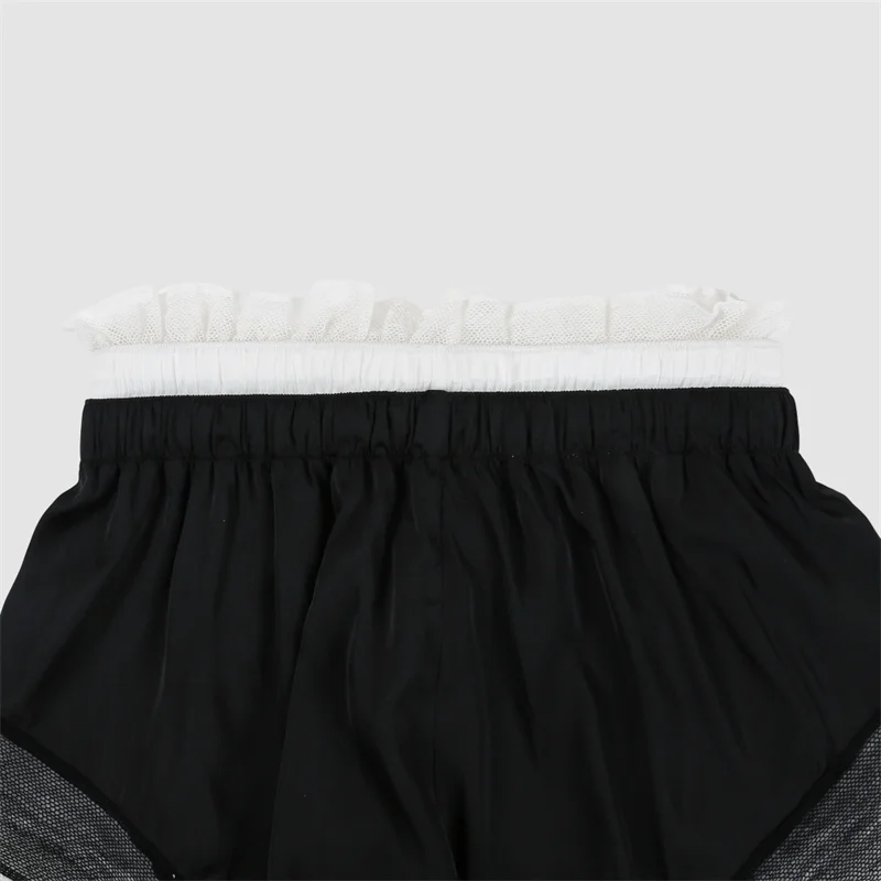 กางเกงขาสั้นของผู้หญิงใหม่สีต่อกันประกบกันกางเกงมินิสำหรับฤดูร้อน2025มีเชือกรัดเอวสูงกางเกงขาสั้นพิเศษ