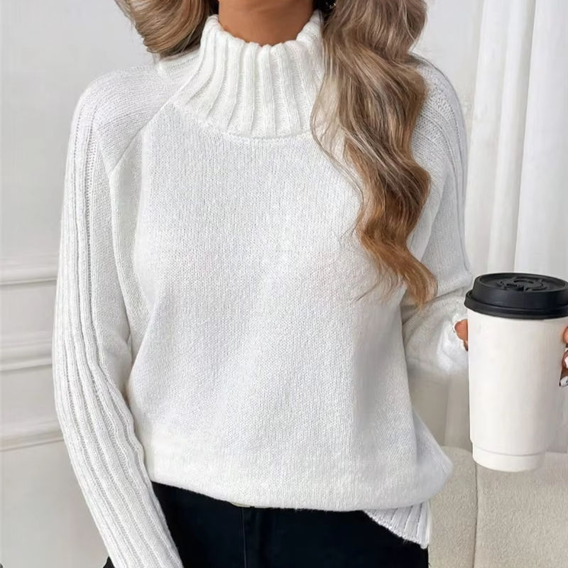 เสื้อกันหนาวแขนยาวผู้หญิง, เสื้อกันหนาวถักสีพื้นเข้ากับทุกชุดฤดูใบไม้ร่วงและฤดูหนาว