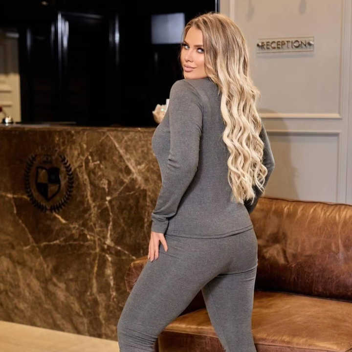 ชุดกางเกงในกันหนาวสำหรับผู้หญิง ชั้นในบุขนแกะให้ความอบอุ่น เสื้อเจอร์ซีย์เนื้อนุ่มยืดหยุ่นได้ ให้ความสบายในฤดูหนาว