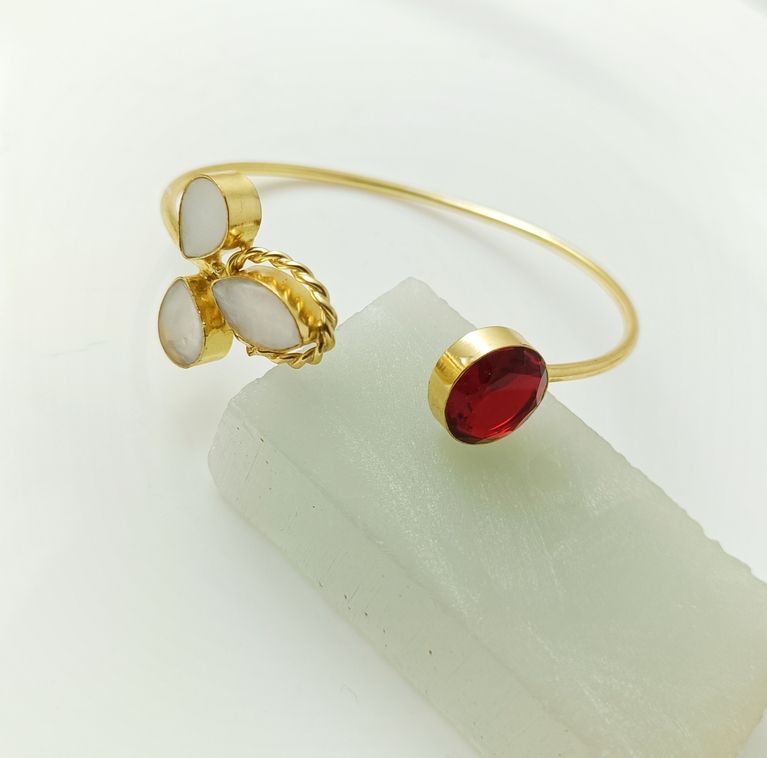 เครื่องประดับแฟชั่นวินเทจของผู้หญิงที่มีแหวนชุบทอง18K, แถบลาบราดอร์ธรรมชาติหลายชั้นและทองเหลือง