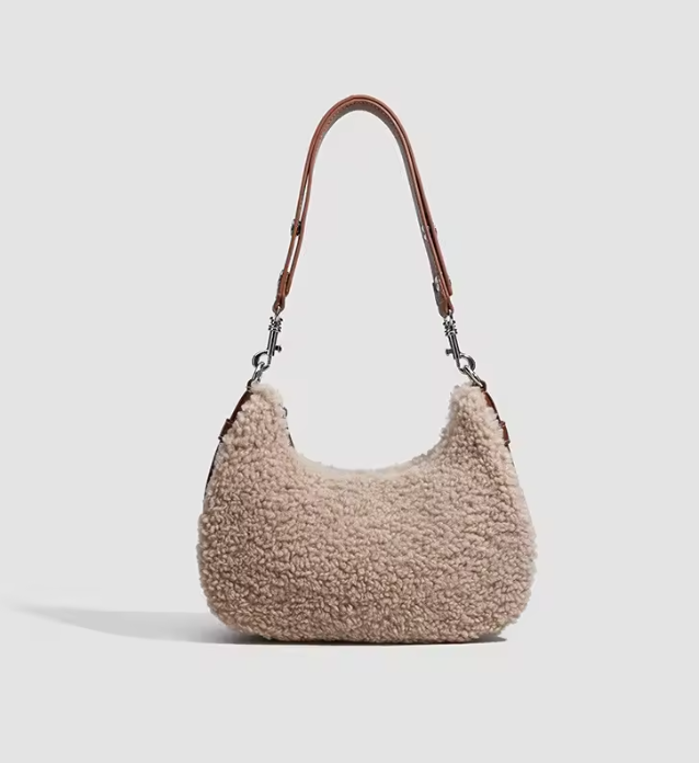 Women's winter fashion artificial wool saddle large capacity waterproof zipper shoulder bag armpit crossbody bag