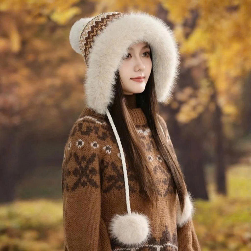 หมวกขนสัตว์ผู้หญิง ดีไซน์น่ารัก ให้ความอบอุ่นในฤดูหนาว วัสดุคุณภาพสูง