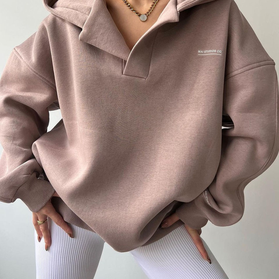 เสื้อฮู้ดโอเวอร์ไซส์สไตล์สปอร์ตสำหรับผู้หญิง แขนยาว เสื้อกันหนาวปักลาย 3 มิติ ผ้าถักนุ่มระบายอากาศ เสื้อคลุมอุ่นๆ สำหรับฤดูหนาว