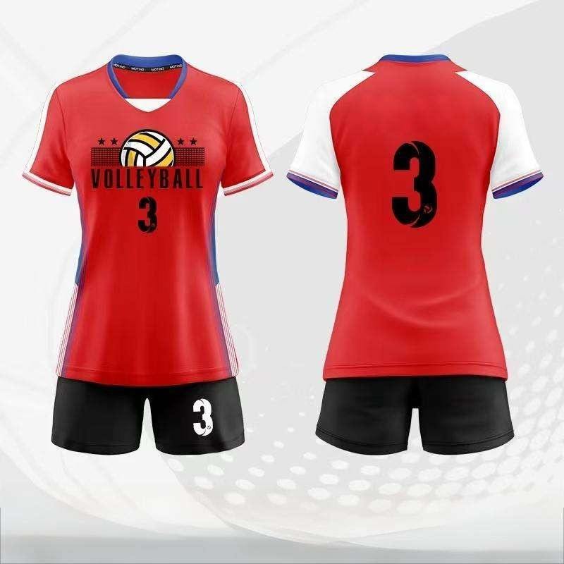 เครื่องแบบวอลเลย์บอลผู้หญิงพิมพ์ซับลิเมชันใส่สบายวัสดุระบายอากาศเหมาะสำหรับทีมกีฬาและแฟชั่นสำหรับนักกีฬา
