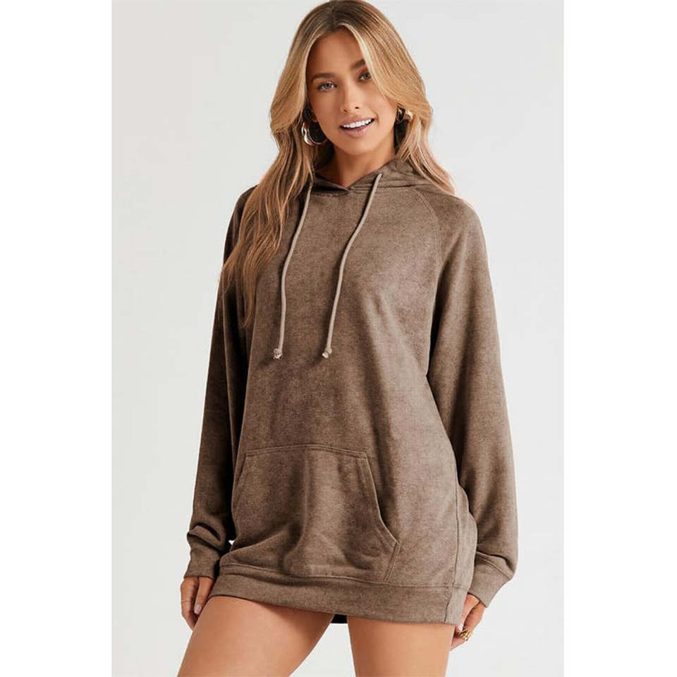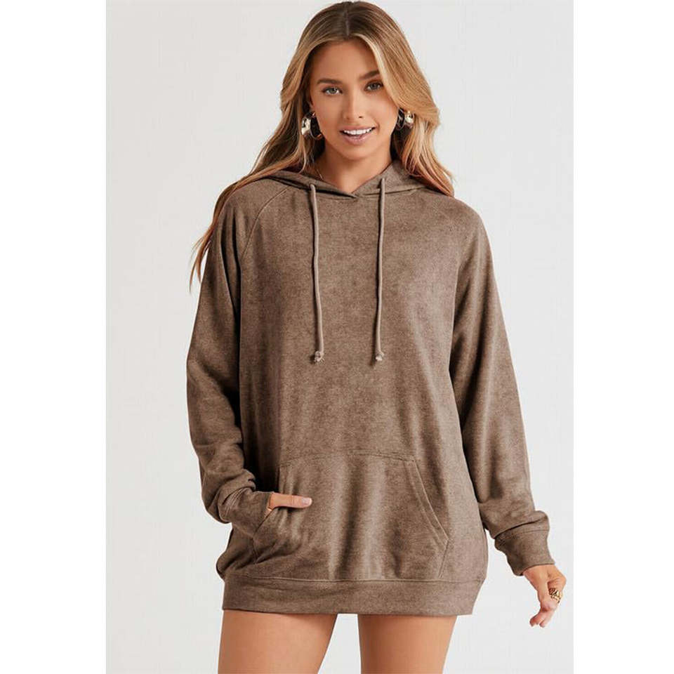 เสื้อฮู้ดผู้หญิงผ้าฟลีซเนื้อนุ่ม อุ่นสบาย แขนยาว สไตล์ลำลอง โอเวอร์ไซส์ ใส่สบายทุกวัน สไตล์สตรีท ด้านหน้า