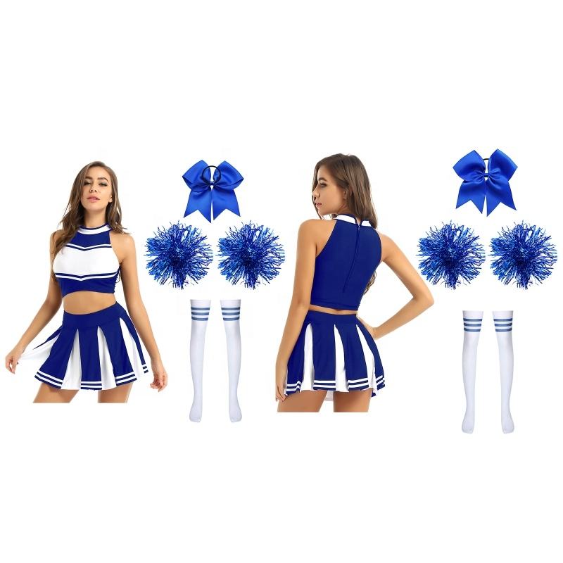 ชุดเชียร์ลีดเดอร์สำหรับผู้หญิง ชุดเสื้อครอปท็อป กระโปรงพลีทสั้น สำหรับเต้นรำ การแสดงบนเวที งานปาร์ตี้ และการแข่งขันบาสเกตบอล
