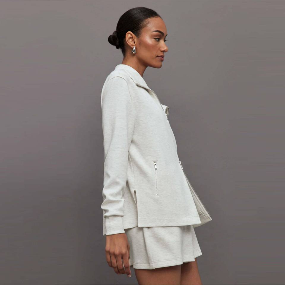 เสื้อแจ็กเก็ตถักแบบมีซิปไม่สมมาตรของผู้หญิงเสื้อแจ็กเก็ตผ้ายีนส์ที่มีสไตล์และสวมใส่สบายพอดีกับดีไซน์ไม่เหมือนใคร