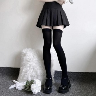 ถุงเท้ายาวแบบเรียบ2สีระบายอากาศของผู้หญิงถุงน่องยาวครึ่งถุงน่อง