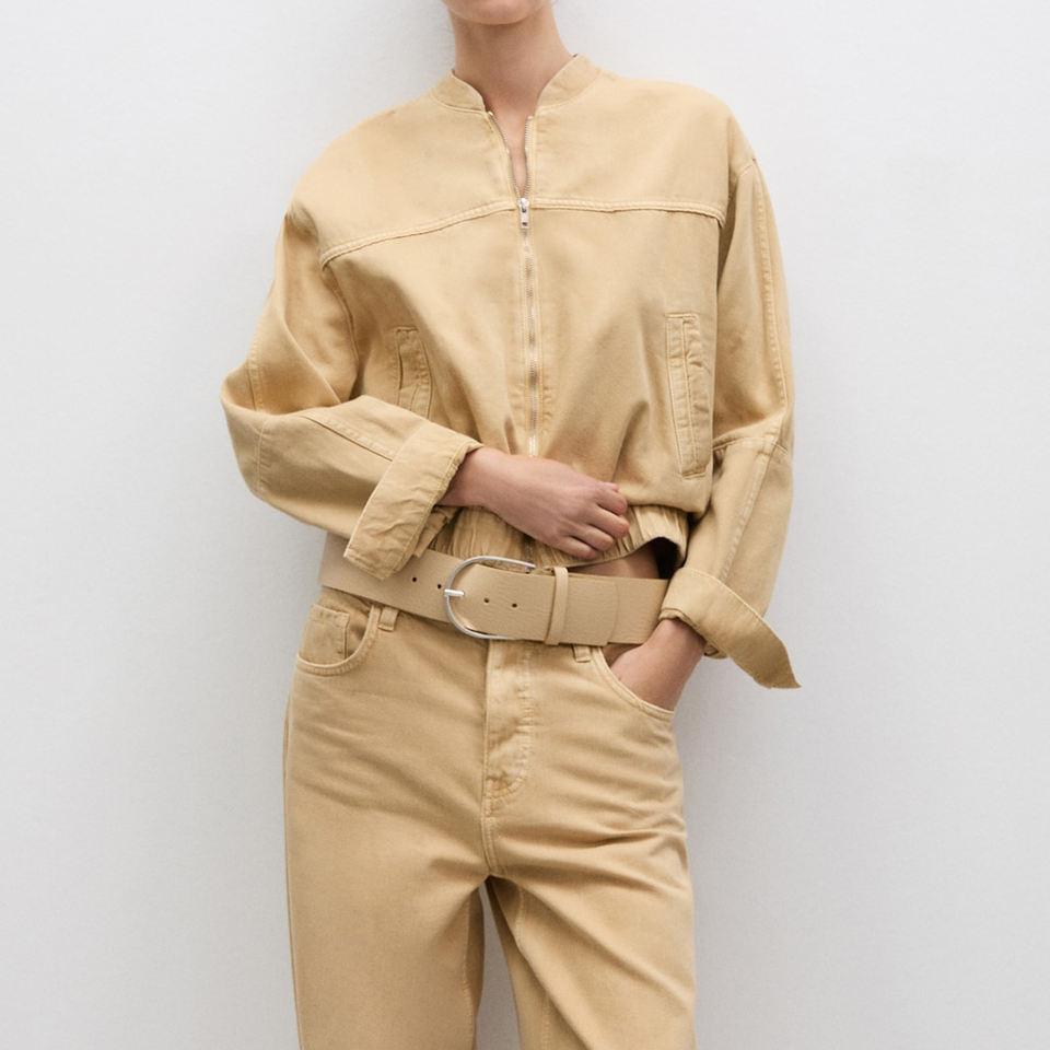 เสื้อแจ็คเก็ตทรงบอมเบอร์แบบซิปสำหรับผู้หญิง สีน้ำตาลอ่อน สไตล์ลำลอง น้ำหนักเบา ทันสมัย เหมาะสำหรับใส่ในชีวิตประจำวัน แฟชั่นสตรีทสุดเก๋ และทันสมัย