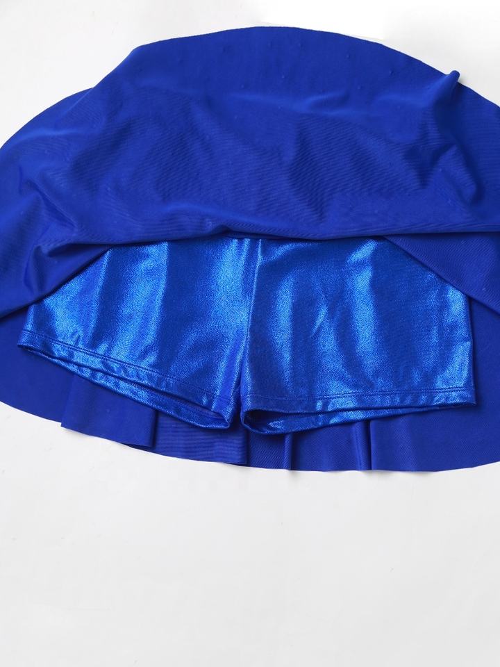 Womens Cheerleading Uniform Crop Top And A-Line Mini Skirt Sets Metallic 2 Pcs Outfits Skirt Dress Dance Costume Events Parties