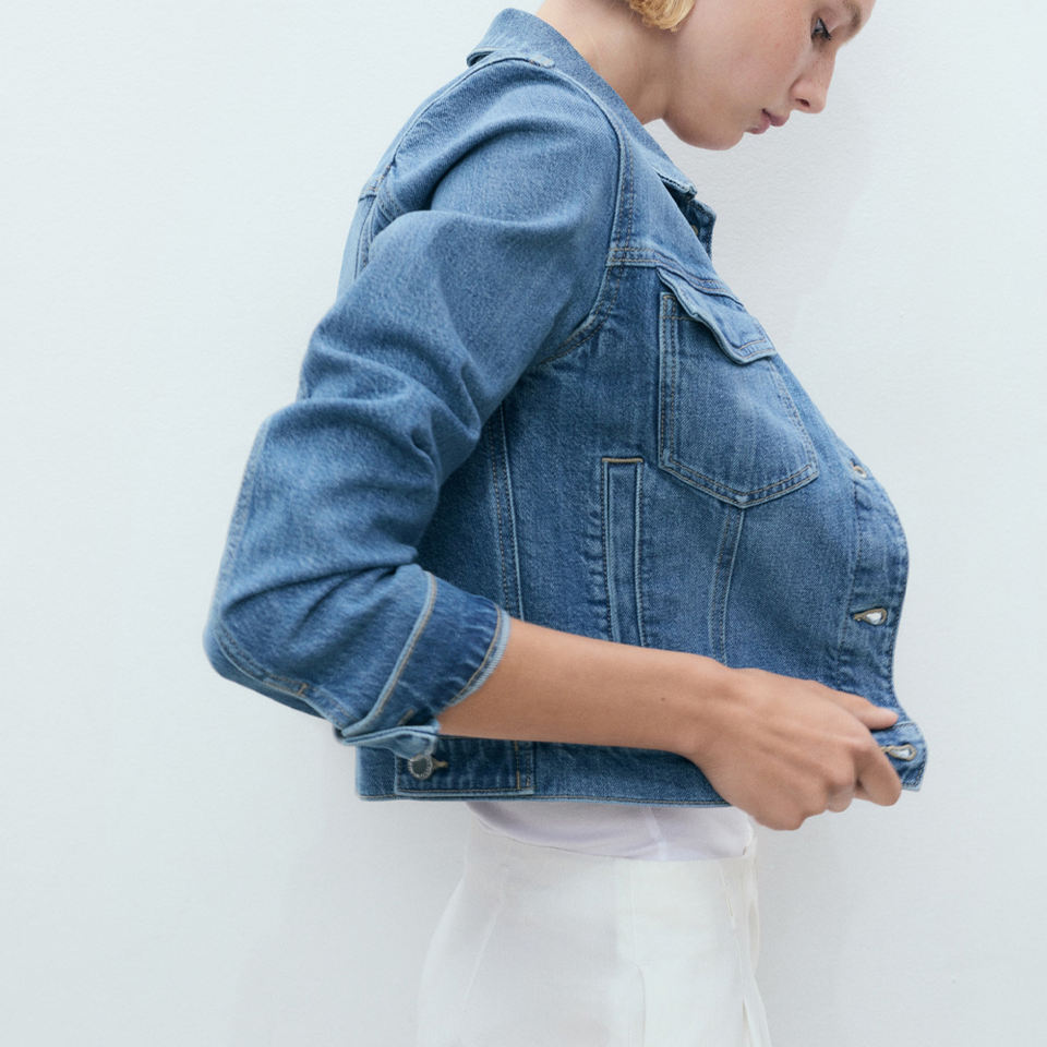 แจ็คเก็ตยีนส์สีน้ำเงินคลาสสิกสำหรับผู้หญิง เสื้อโค้ทยีนส์ติดกระดุม สไตล์ลำลอง สำหรับการสวมใส่ในชีวิตประจำวัน แฟชั่นสตรีทสุดอินเทรนด์