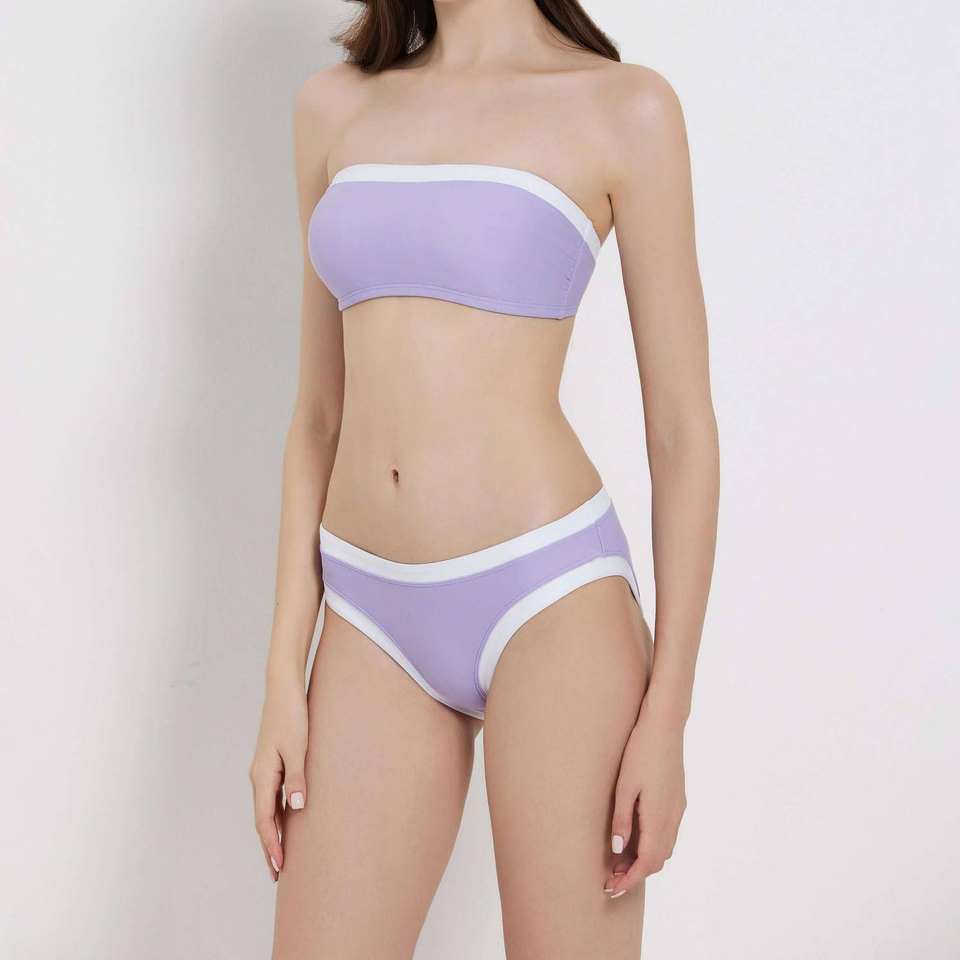 ชุดบิกินี่แบบไร้สายสำหรับผู้หญิง แต่งขอบตัดสี พร้อมโลโก้ด้านหน้า เสื้อทรงบันโด ท็อปเอวต่ำ ชุดว่ายน้ำสองชิ้น เป็นมิตรกับสิ่งแวดล้อม เหมาะสำหรับใส่ไปเที่ยวทะเลในช่วงฤดูร้อน