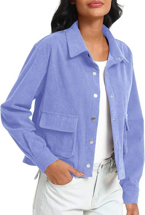 เสื้อแจ็คเก็ตผ้าลูกฟูกแบบครอปสำหรับผู้หญิง ติดกระดุม แขนยาว น้ำหนักเบา เหมาะสำหรับฤดูใบไม้ผลิและฤดูใบไม้ร่วง