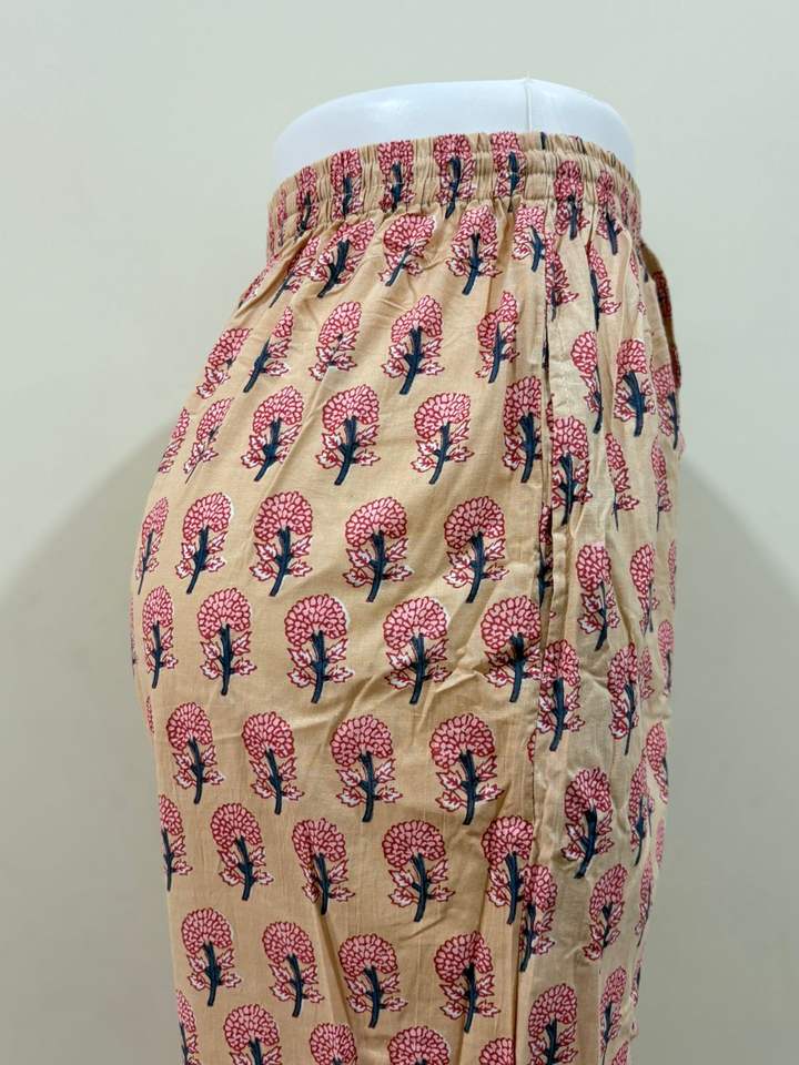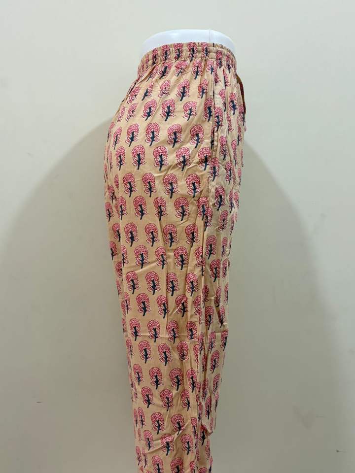 ชุดนอนกางเกงผ้าฝ้ายพิมพ์ลายสไตล์โบโฮสำหรับผู้หญิงกางเกงเลานจ์พิมพ์ลายต้นไม้ชาติพันธุ์กางเกงผ้าฝ้าย