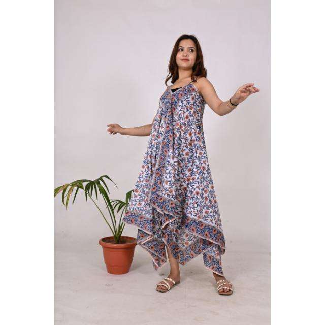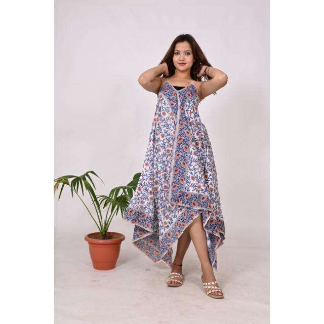 เดรสผ้าโสร่งพิมพ์ลายดอกไม้สไตล์โบฮีเมียนแขนกุดผ้าคอตตอนเป็นมิตรกับสิ่งแวดล้อมสำหรับใส่ไปงานปาร์ตี้ชายหาดทุกวัน