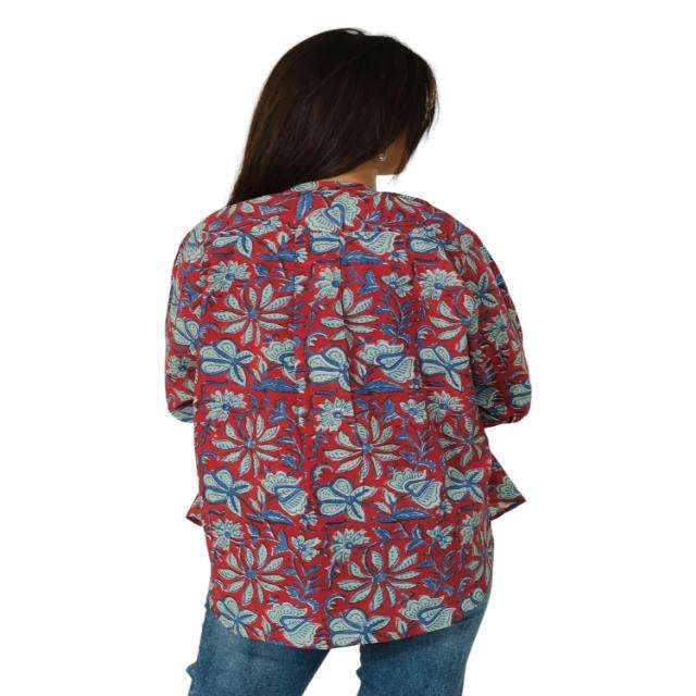 เสื้อโบฮีเมียนผ้าฝ้ายสำหรับผู้หญิงเสื้อพิมพ์ลายบล็อคน้ำหนักเบาเสื้อเชิ้ตสไตล์ฮิปปี้ลำลองแขนยาวฤดูร้อน