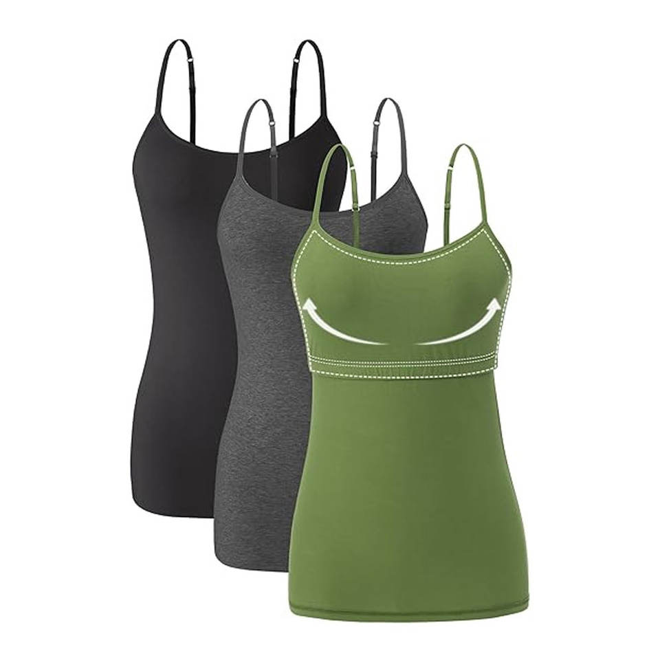 เสื้อกล้ามผู้หญิงผ้าฝ้ายลำลองแบบมีโครงในตัว สายปรับได้ ระบายอากาศดี รับผลิตแบบ OEM พร้อมปรับแต่งสีและโลโก้ได้