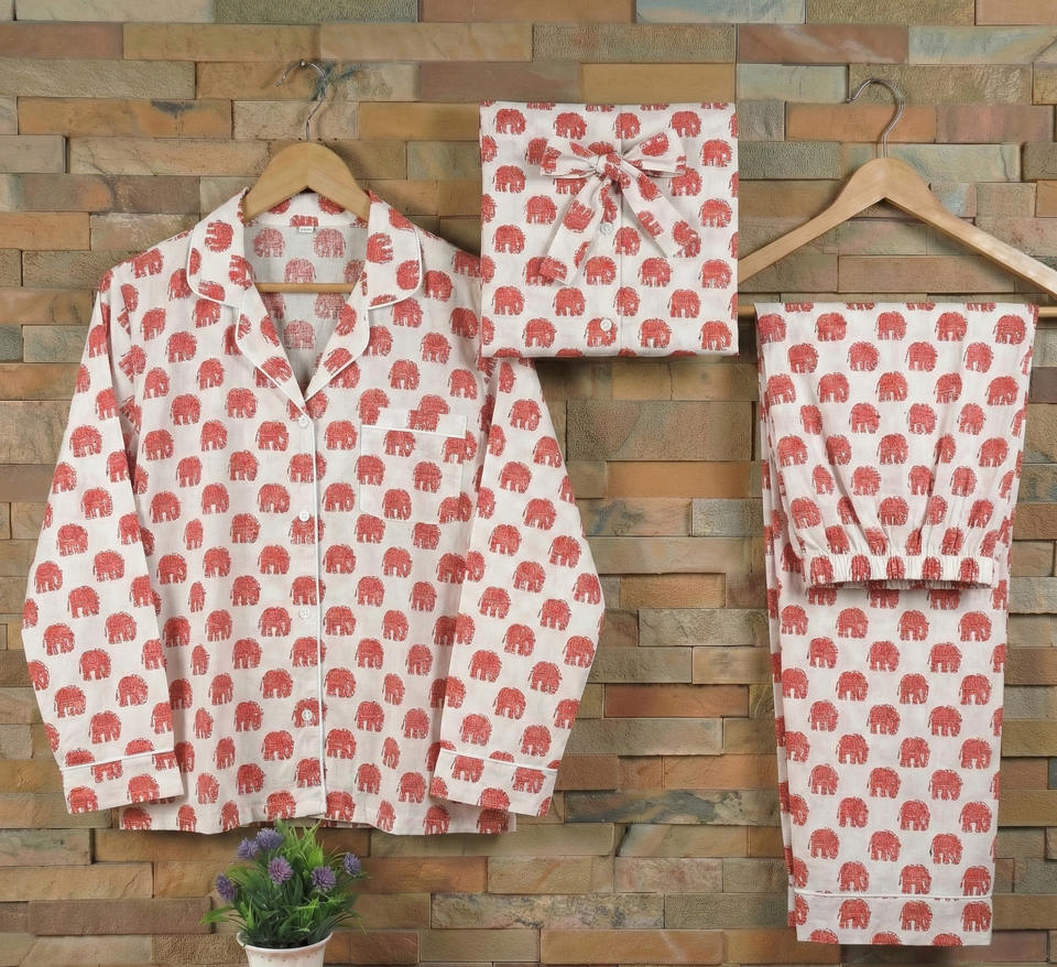 ผู้ผลิตชุดนอนผ้าฝ้ายพิมพ์ลายด้วยมือสำหรับผู้หญิงจากอินเดีย จำหน่ายส่ง