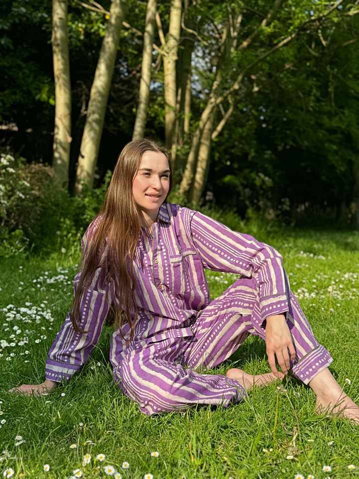 ชุดนอนผ้าฝ้ายตัวยาวสำหรับผู้หญิงชุดนอนแขนยาวพิมพ์ลายสวมใส่สบายใส่นอนและเลานจ์หรูหราสำหรับใส่ในฤดูร้อน