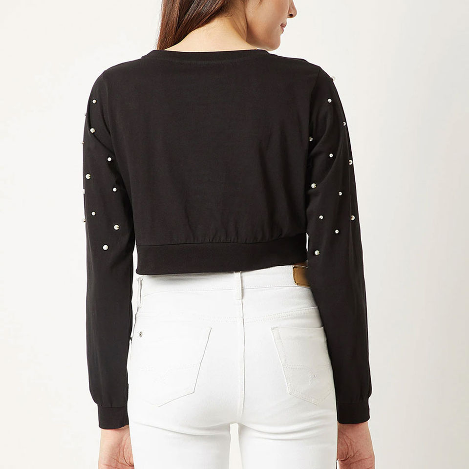 เสื้อครอปแขนเต็มของผู้หญิงผ้ายืดโพลีเอสเตอร์อินเทรนด์ทรงสลิมฟิตเสื้อครอปของผู้หญิงขายส่งแบรนด์