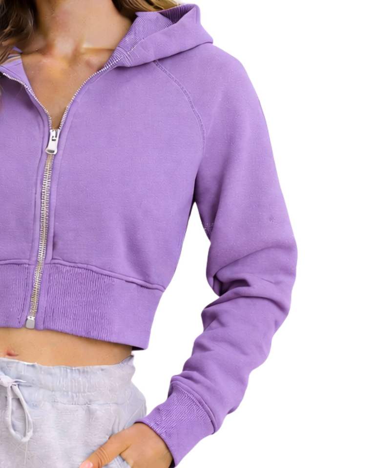 เสื้อฮู้ดครอปซิปสำหรับผู้หญิง แขนยาว สวมใส่สบาย ผ้าฟลีซเนื้อนุ่ม สไตล์สตรีทแวร์ สีม่วงลาเวนเดอร์ แฟชั่นฤดูใบไม้ร่วงและฤดูหนาว
