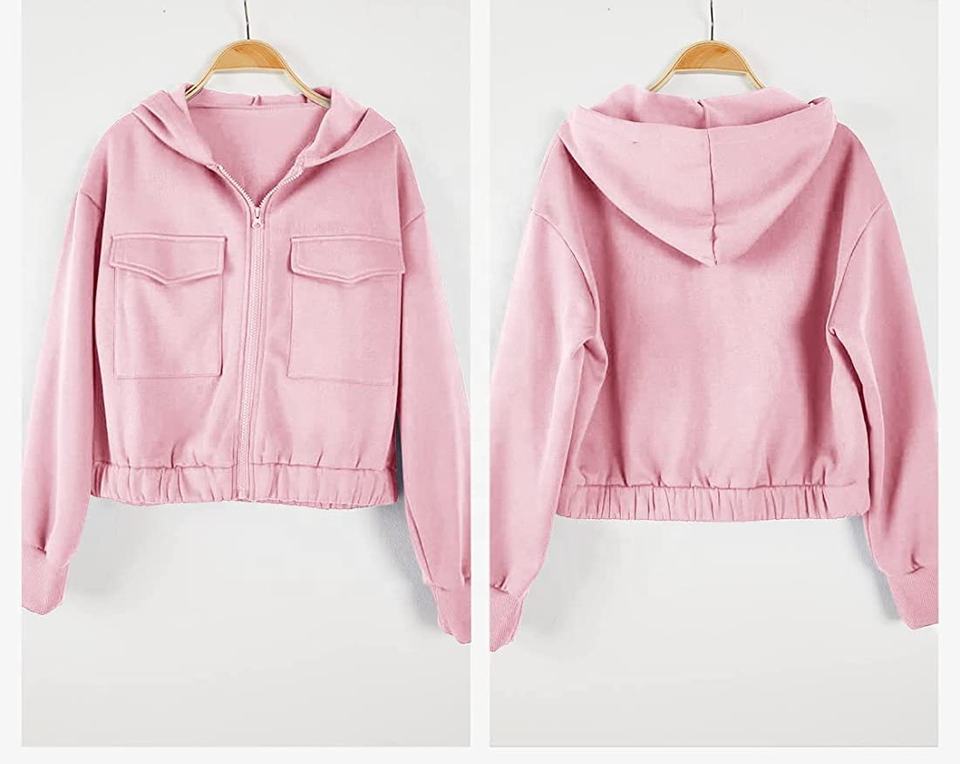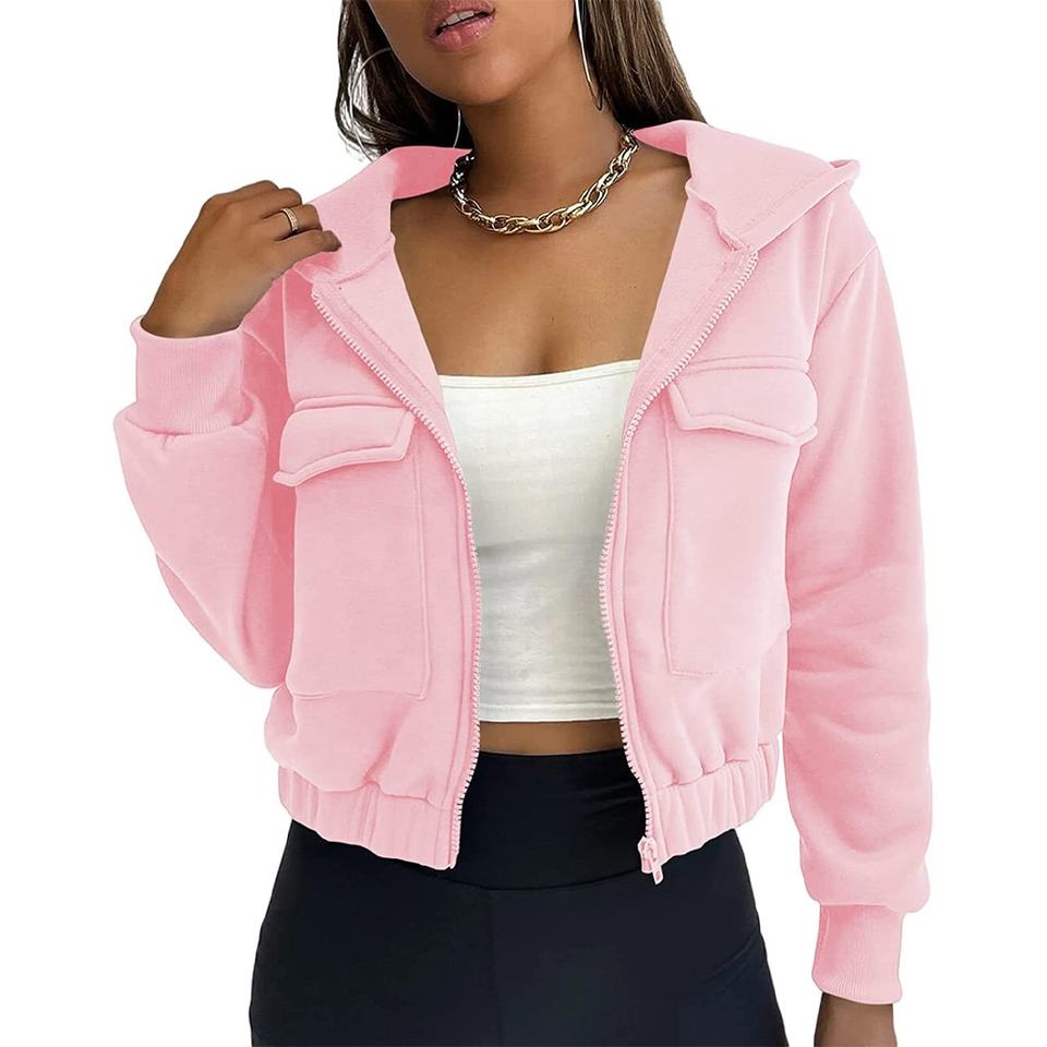 เสื้อครอปแบบมีฮู้ดของผู้หญิง,เสื้อฮู้ดเอวลอยผ้าฝ้ายมีกระเป๋า