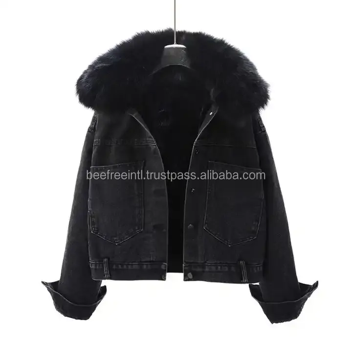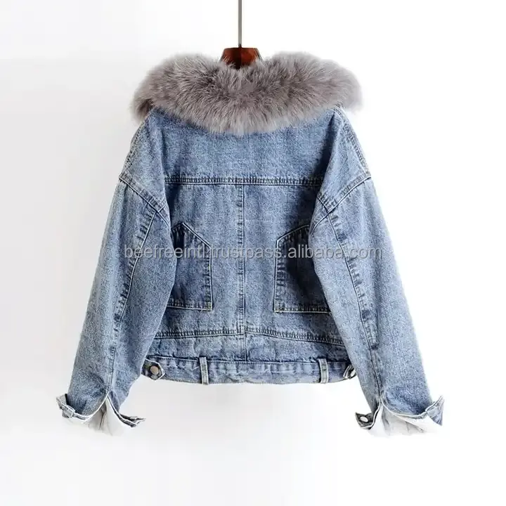 เสื้อแจ็กเก็ตผ้ายีนส์ของผู้หญิงเสื้อโค้ทผ้ายีนส์โอเวอร์ไซส์แบบคลาสสิกสีน้ำเงินมีกระดุมขาดทันสมัย
