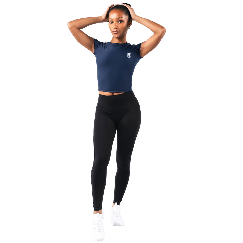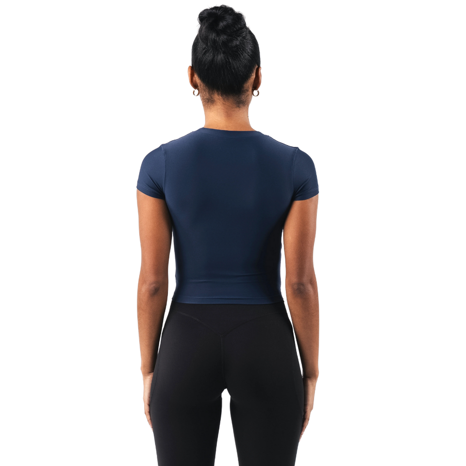 เสื้อยืดแขนสั้นสองชั้นสำหรับผู้หญิง สีฟ้าอ่อน ยืดหยุ่นได้ดี เหมาะสำหรับออกกำลังกาย โยคะ และการฝึกซ้อม