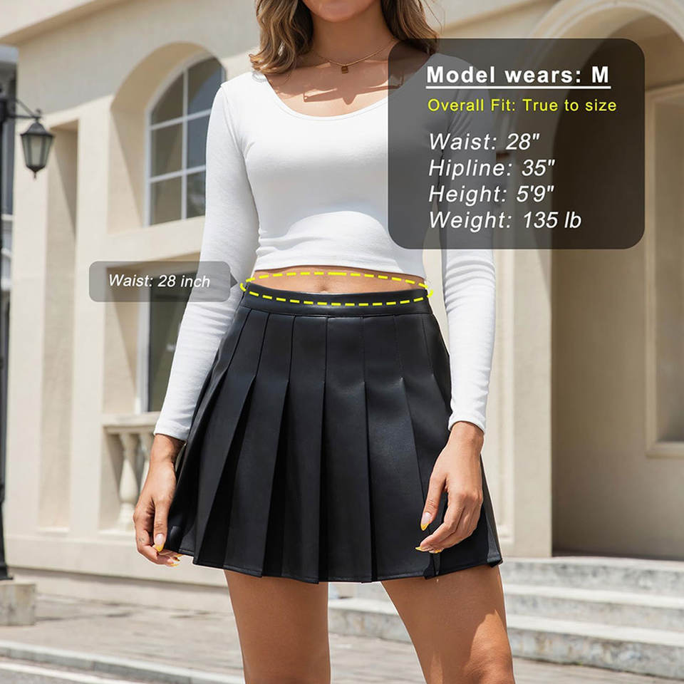 กระโปรงมินิหนังเทียมทรงเอเอวสูงสำหรับผู้หญิง กระโปรงสั้นจีบแบบสเก็ตเตอร์