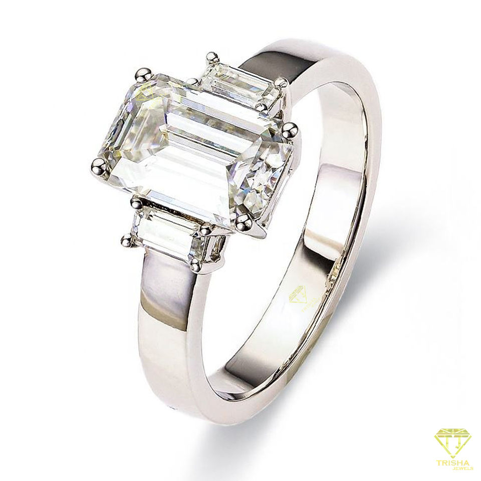 แหวนหมั้นเพชรมอยส์ซอไนต์สำหรับผู้หญิงดีไซน์หินสามชิ้นประดับเจ้าสาวสุดหรูสำหรับเธอ