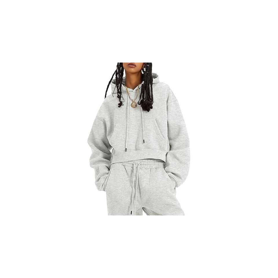 ชุด2ชิ้นผ้าฟลีซของผู้หญิงเสื้อกันหนาวแบบสวมหัวชุดวอร์มกางเกงชุดวอร์ม