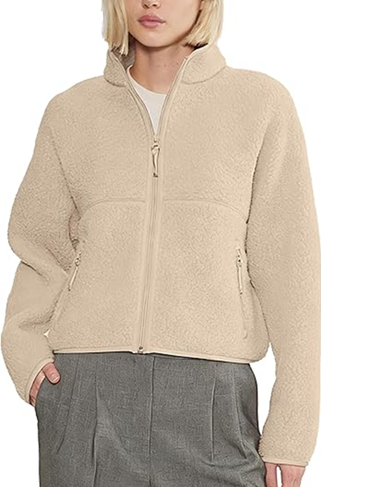 เสื้อแจ็คเก็ตขนแกะผู้หญิงแบบซิป เสื้อสเวตเชิ้ตโอเวอร์ไซส์ เสื้อผ้าฤดูหนาว แขนยาว เสื้อครอปเชอร์ปา ชุดแฟชั่นฤดูใบไม้ร่วง