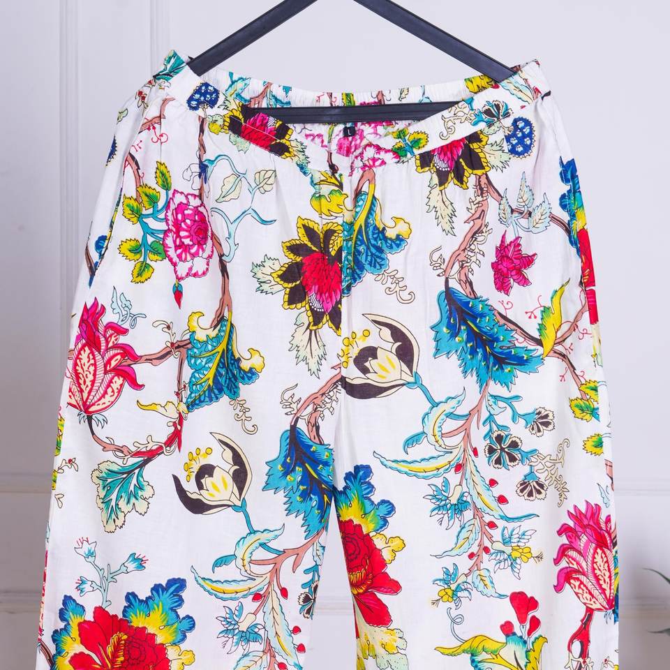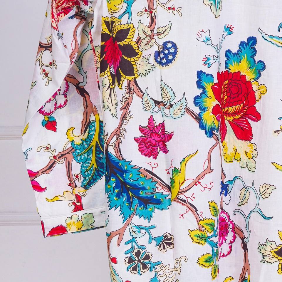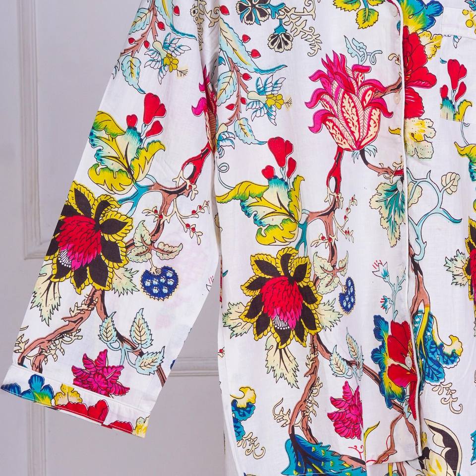 ชุดนอนผ้าฝ้ายพิมพ์ลายดอกไม้ลายทางแนวตั้งสำหรับผู้หญิง ทำมือ ดีไซน์ทันสมัย แขนยาว สำหรับฤดูร้อนและฤดูใบไม้ผลิ