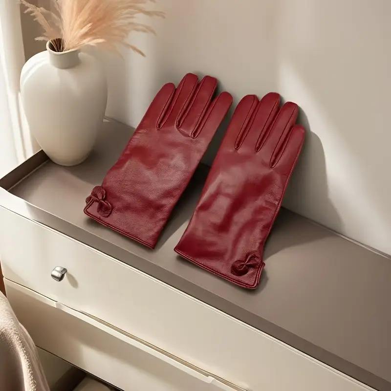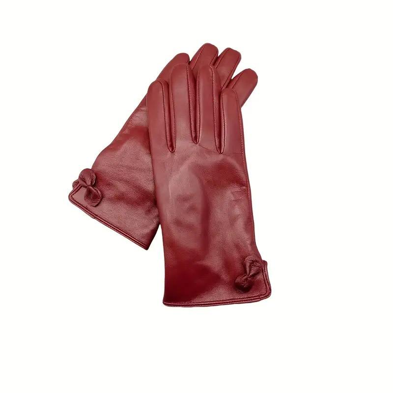 ถุงมือหนังแท้สำหรับผู้หญิง, สีพื้น, กันลื่น, ซับในอบอุ่น, ตกแต่งหัวใจ, สำหรับฤดูใบไม้ผลิ, ฤดูใบไม้ร่วง, ขี่จักรยาน