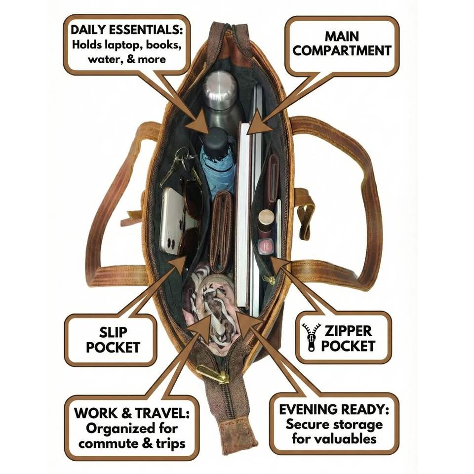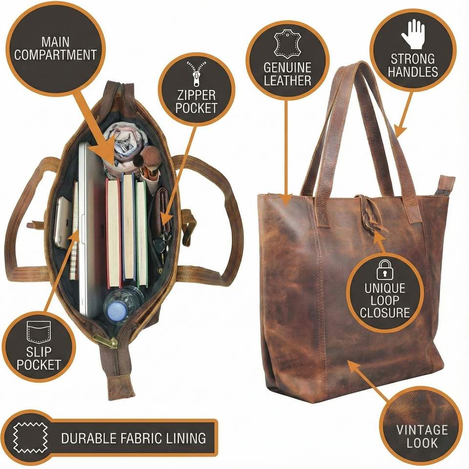 กระเป๋าโท้ทหนังแท้สำหรับผู้หญิง สไตล์ลำลอง ดีไซน์เรียบง่าย พร้อมซิปปิด เหมาะสำหรับการเดินทางและการช้อปปิ้ง