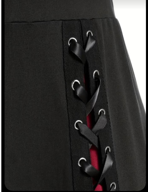 กระโปรงทรงเอไลน์สีดำและสีม่วงสไตล์โกธิคสำหรับผู้หญิง แต่งลูกไม้ผูกเชือก