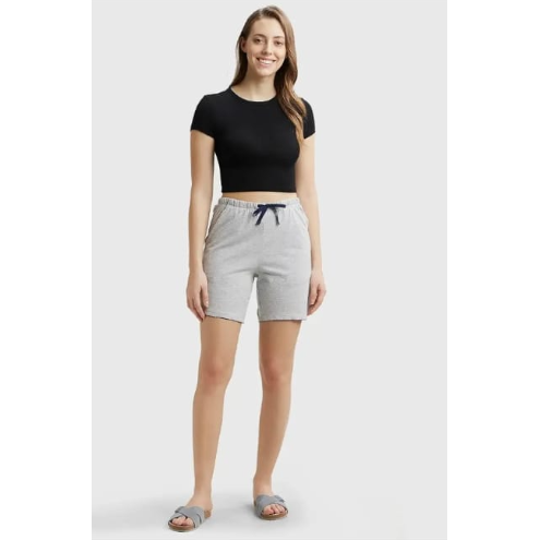กางเกงขาสั้นลำลองผ้าฝ้ายเจอร์ซีย์สีเทาสำหรับผู้หญิง มีเชือกผูกเอว สวมใส่สบาย เหมาะสำหรับฤดูร้อน