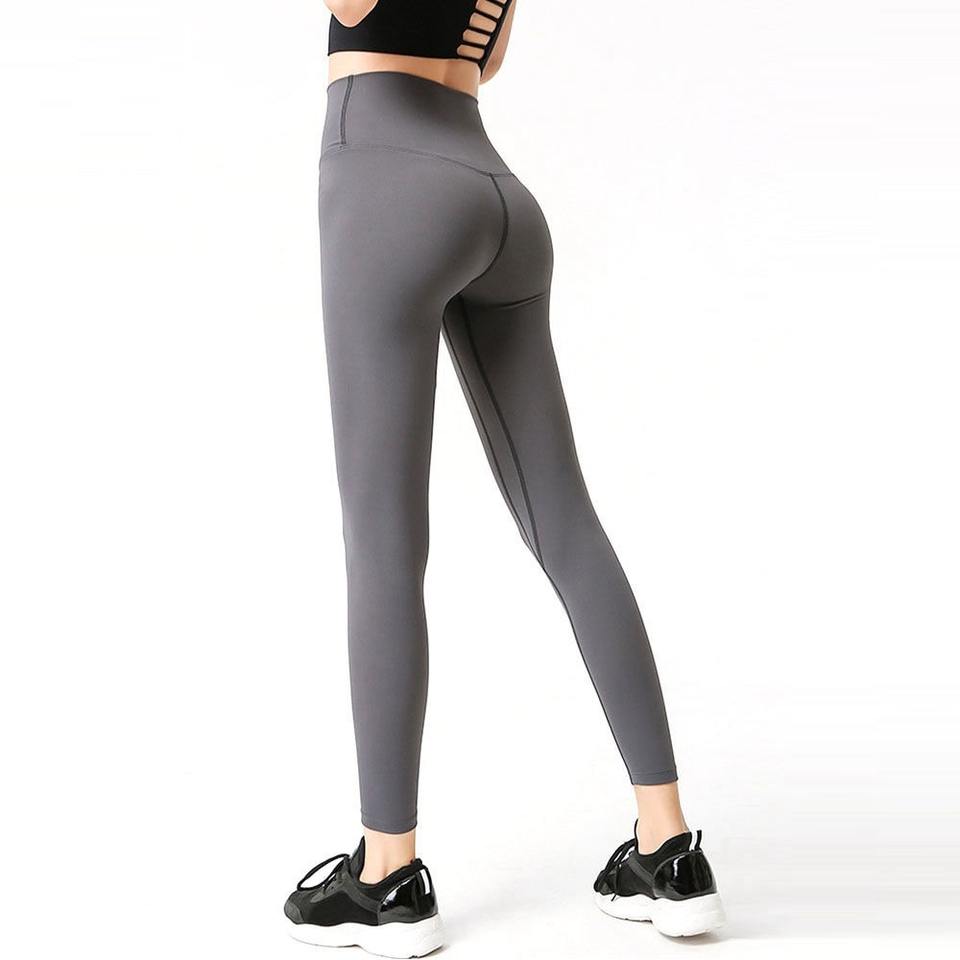 ชุดออกกำลังกายผู้หญิง ชุดโยคะไร้ตะเข็บ กางเกงเลกกิ้งและเสื้อชั้นในกีฬา สีพื้น ผ้าฝ้าย