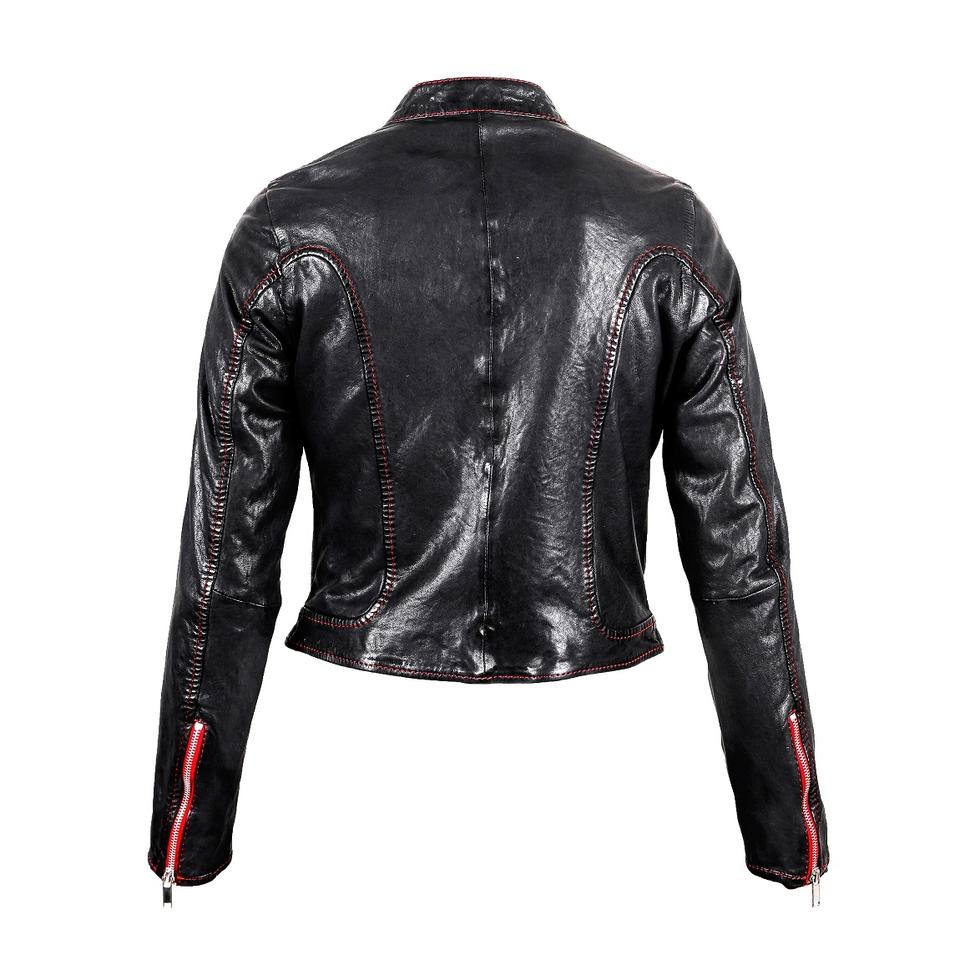 เสื้อแจ็กเก็ตขนแกะฟอกหนังแท้สำหรับสตรีผ้าขนแกะมีซิปตัดกัน
