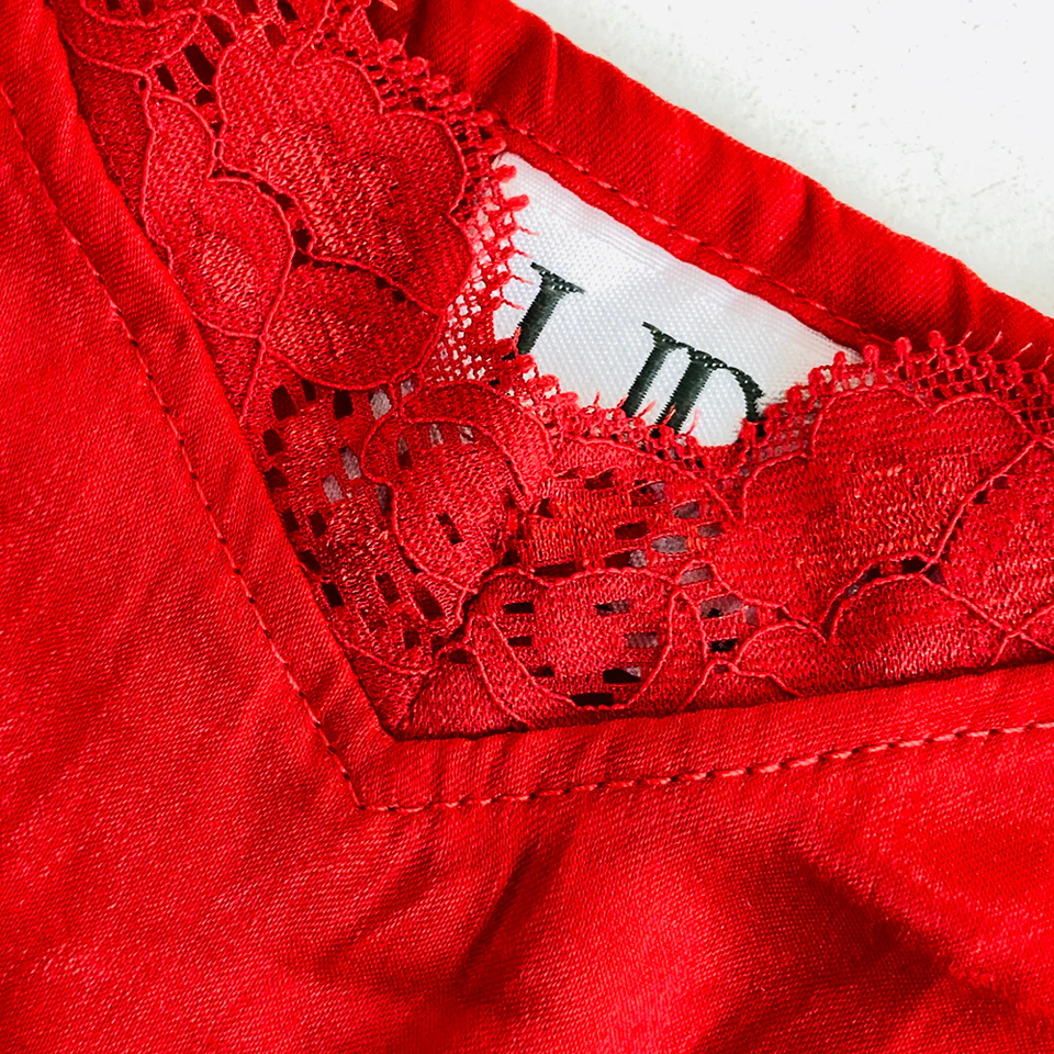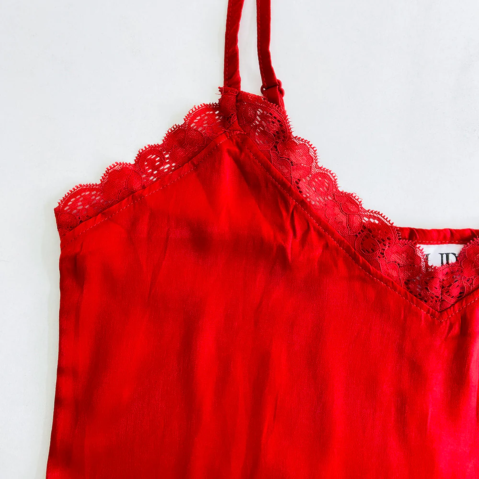 ชุดนอนผ้าซาตินสีแดงร้อนแรงสำหรับผู้หญิง แขนกุด สั้น สบาย เซ็กซี่ ชุดนอนสองชิ้น