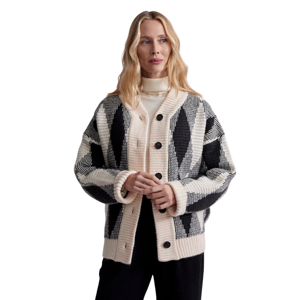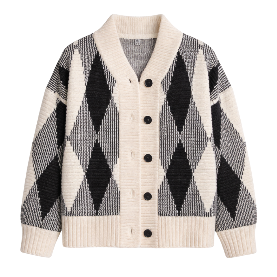 เสื้อแจ็คเก็ตถักลายแจ็คการ์ดสำหรับผู้หญิง ทรงโอเวอร์ไซส์ ติดกระดุมด้านหน้า ลายเพชร เสื้อโค้ทไหมพรมอุ่นๆ สวมใส่สบายๆ สำหรับฤดูหนาว เหมาะสำหรับใส่เป็นเสื้อคลุมชั้นนอก