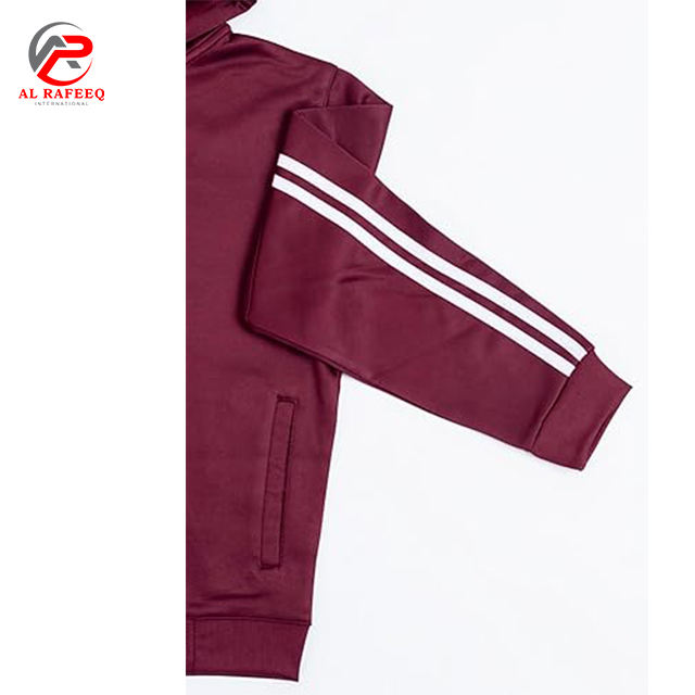 ชุดวิ่งของผู้หญิงชุดวอร์มมีฮู้ดชุดออกกำลังกายแขนยาวชุดออกกำลังกาย2ชิ้นลายทางมีกระเป๋า