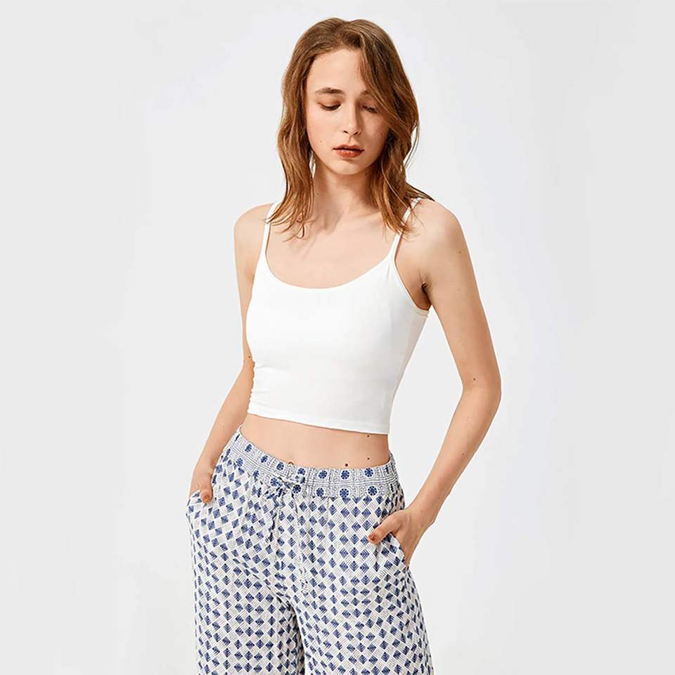 เสื้อครอปแขนกุดผ้าถักแบบริบสำหรับผู้หญิง เนื้อผ้านุ่ม ยืดหยุ่น แห้งเร็ว สไตล์ลำลอง เหมาะสำหรับใส่ในชีวิตประจำวันช่วงฤดูร้อน