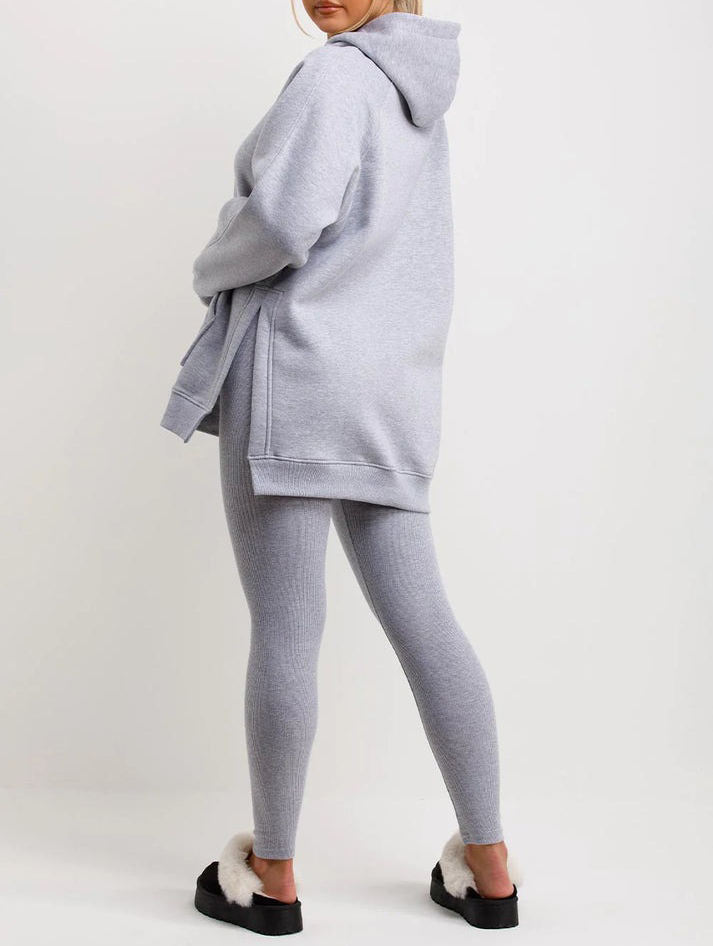 ชุดสเวตเชิ้ตและกางเกงเลกกิ้งมีฮู้ดโอเวอร์ไซส์เสื้อผ้าลำลองสำหรับผู้หญิง