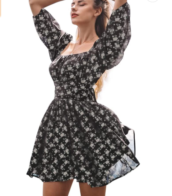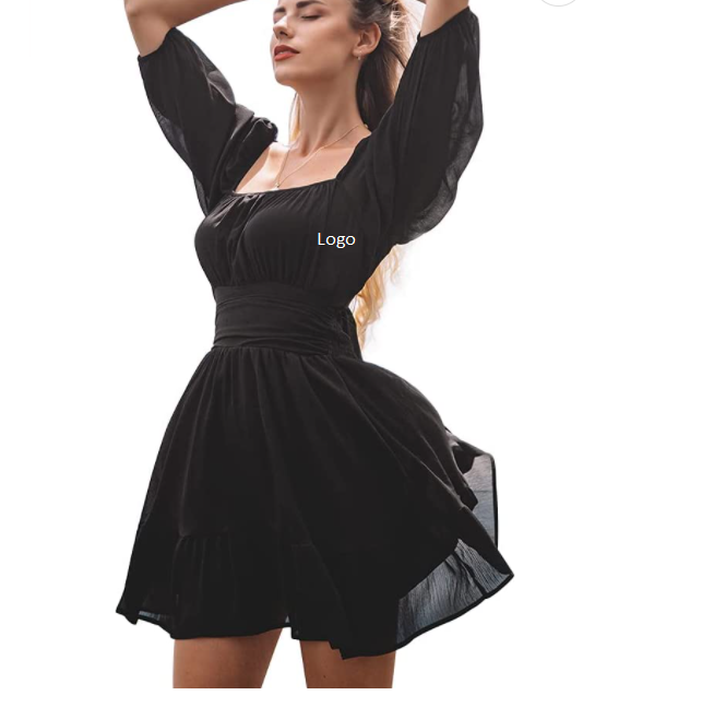 เดรสแขนโคมไฟสำหรับผู้หญิง,เดรสมินิเดรสเปิดไหล่ทรงเอไลน์วินเทจคอเหลี่ยมแขนโคมไฟมีระบาย
