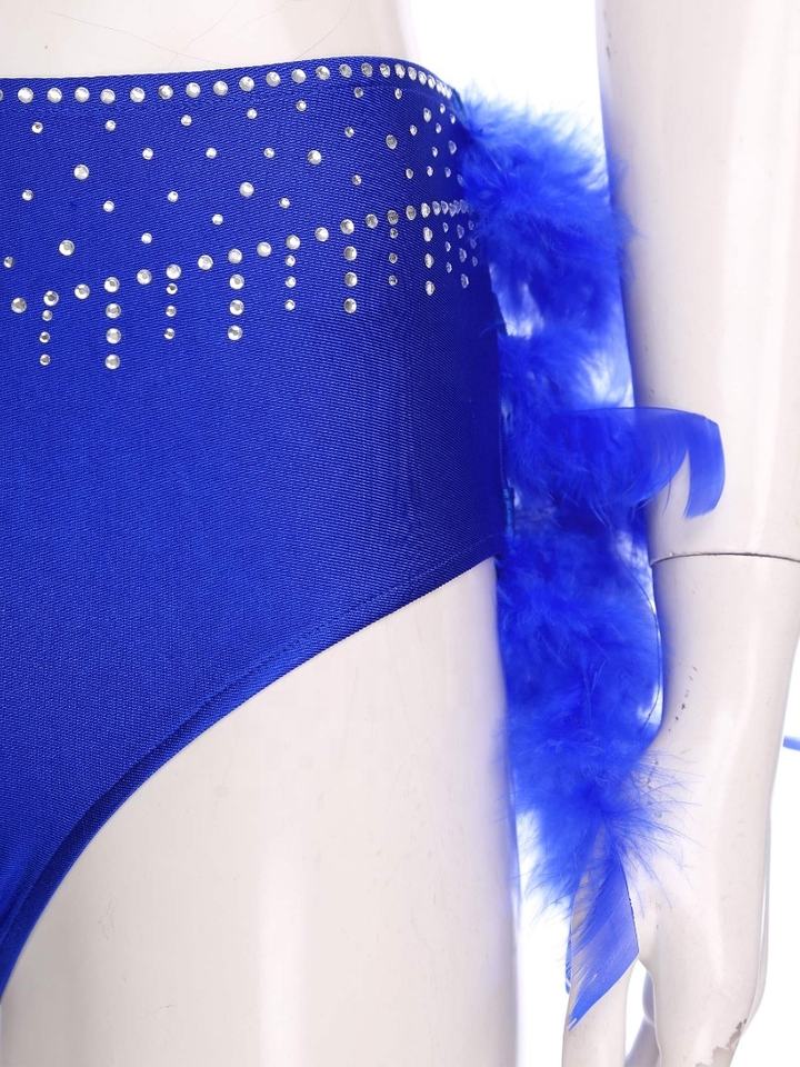 Material:77% Polyester, 10% Rhinestone, 8% Faux Feather, 5% Spandex